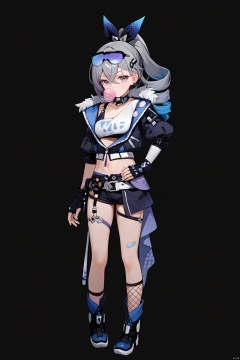 score_9,score_8_up,score_7_up,best quality,masterpiece,source_anime,\\\\\\\\\\\\8k,best quality,masterpiece,(ultra-detailed),(high detailed skin),symmetrical,(full body),white background,standing,looking at viewer,(solo),hand on hip,\\\\\\\\\\\\\\\\\\\\,yinlang, bronya zaychik, eyewear on head, grey eyes, grey hair, long hair, drill hair, gloves, bubble blowing, jacket, shorts, chewing gum,fingerless gloves, navel, mesh socks,gloves,blackdress,blacksingle thigh high,earrings,jewelry,\\\\\\\\\\\\\\\\\(white background, simple background),(beautiful_face),((intricate_detail)),clear face,((finely_detailed)),fine_fabric_emphasis,((glossy)),full_shot, hquan,purple eyes<lora:EMS-323771-EMS:0.800000>