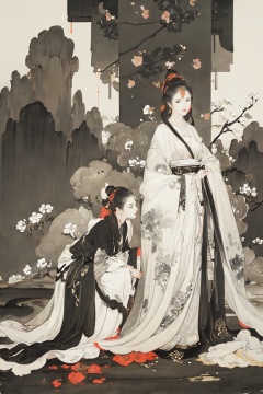 best quality, masterpiece, 8k, ultra high res, (photorealistic:1.4), highly detailed, intricate detail, delicate and beautiful, good lighting, professional lighting, sharp focus, detailed shadows, exquisite details and textures, depth of field, unity 8k wallpaper,1girl,night, huge full moon, outdoor, Hanfu, full body, courtyard, branches, flowers, grass,(black and white ink painting:2.0)