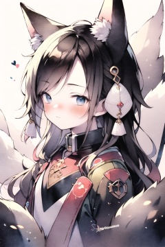 watercolor_(medium),ink and wash,portrait of a lovely girl,fox_ears,