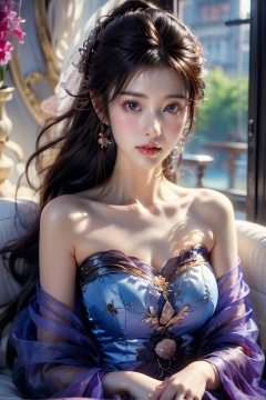 Masterpiece, Best Quality, HD 16K, a girl, bust, purple theme, delicate features, traditional dress, hair accessories, film-level lighting rendering, lifelike, details enhanced,