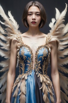 Horror-themed Abstract style,otherworldly being with luminous ethereal wings,radiating an aura of tranquility and grace,body adorned with intricate patterns and delicate lines,evoking a sense of harmony amidst chaos,high detail,award winning masterpiece with incredible details,non-representational,colors and shapes,expression of feelings,imaginative,highly detailed,eerie,unsettling,dark,spooky,suspenseful,grim,highly detailed,1girl,md symmetrical,solo,(red wing:1.2),(blue wing:1.2),night,moon,crystal evening dress,colorful,masterpiece,best quality,ultra-detailed,<lora:翅膀:0.8>,