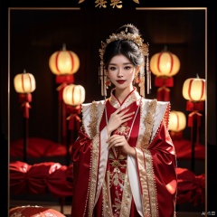 mamianqun, masterpiece, best quality, 32k uhd, hdr, dtm, cinematic lighting effects, wide shot, wide-angle lens,super vista, super wide angle, exquisite facial features, super delicate face, best fingers,High quality, 1 girl, festive red, full body lens, black hair, looking at the audience, hair accessories, brown eyes, jewelry, shut up, red happy clothes, earrings, outdoor, sky, hair bun, night, Chinese clothes, prints, shawls, tassels, star sky, moon, Yuanxiao (Filled round balls made of glutinous rice-flour for Lantern Festival), hanfu, hydress, red and gold dress, girl, hair,Facial shape,