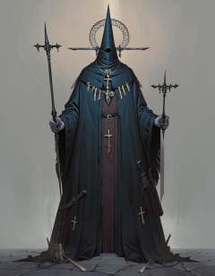Gothic style score_9_up,score_8_up,score_7_up,score_6_up,chiaroscuro,low-key,solo,1boy,holding,jewelry,standing,full body,weapon,sword,necklace,holding weapon,holding sword,helmet,cross,knife,dual wielding,robe,holding knife,candle,dagger,holding dagger,candlestand,<lora:cultistexl-000005:1>,<lora:zavy-cntrst-sdxl:0.8>,<lora:xl_more_art-full_v1:0.8>, . Dark, mysterious, haunting, dramatic, ornate, detailed