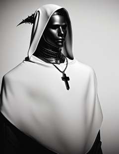 Monochrome score_9_up,score_8_up,score_7_up,score_6_up,dark,chiaroscuro,low-key,(faceless:1.2),1boy,solo,spiked,hood,hood up,jewelry,robe,shoulder armor,chain,male focus,upper body,necklace,cross,<lora:cultistexl-000005:1>,<lora:zavy-cntrst-sdxl:0.8>,<lora:xl_more_art-full_v1:0.8>, . Black and white, contrast, tone, texture, detailed