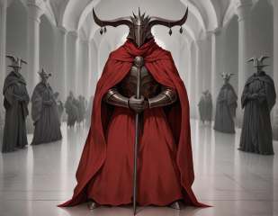 analog film photo score_9_up,score_8_up,score_7_up,score_6_up,greyscale,dark,chiaroscuro,low-key,(red theme:1.4),solo,looking at viewer,holding,standing,weapon,multiple boys,horns,cape,holding weapon,armor,helmet,polearm,staff,clenched hand,robe,multiple others,6+others,cathedral,<lora:cultistexl-000005:1>,<lora:zavy-cntrst-sdxl:0.8>,<lora:xl_more_art-full_v1:0.8>, . faded film, desaturated, 35mm photo, grainy, vignette, vintage, Kodachrome, Lomography, stained, highly detailed, found footage
