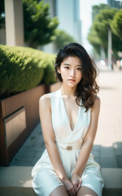 photo of top model 18 y.o,final fantasy still,extremely high quality RAW photograph,detailed background,intricate,Exquisite details and textures,highly detailed,ultra detailed photograph,4k,sharp focus,high resolution,detailed skin,detailed eyes,8k uhd,dslr,high quality,film grain,Fujifilm XT3,high_contrast,Asia,superfine,Sit down. Turn around,Excellent light,Korean idol,outdoors,a poster,Sexy fashion,branded clothing,luxury,Film festival,wide aperture,shallow depth of field,A little curly hair,A shallow smile,Cool color Clothes,Photographic fill,The Morandi color clothes,Formal wear,