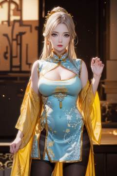 ultra realistic 8k cg,picture-perfect face,flawless,clean,masterpiece,professional artwork,famous artwork,cinematic lighting,cinematic bloom,perfect face,beautiful face,beautiful eyes,fantasy,dreamlike,unreal,science fiction,large breasts,beautiful clothes,long hair,(rich:1.4),prestige,luxury,jewelry,diamond,gold,pearl,gem,sapphire,ruby,emerald,intricate detail,delicate,(chinese clothes,china dress,dress, pantyhose:1.4),looking at viewer,standing,(1girl,solo),hanfu,upper body,cleavage,