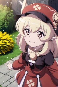 masterpiece, best quality, <lora:tgm-v2:1>,pixiv,  <lora:klee:1>,1girl,solo,cowboy shot,day,outdoors,klee \(genshin impact\),red hat,face,blonde hair, pointy ears, red dress,smile,