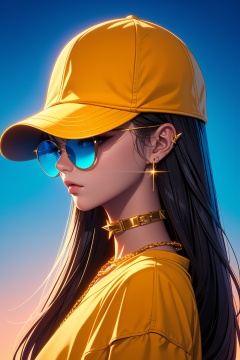 QXHTX,backlight,rim light,1girl,hat,solo,jewelry,long hair,chain,earrings,baseball cap,necklace,gold chain,spiked collar,ear piercing,black hair,chain necklace,<lora:QXHTX_20240412134359-000008:0.8>,