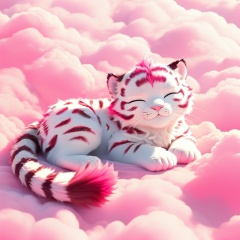 yinhu, tigger, fluffy, pink pattern, soft lighting, tiger boy, white fur, whimsy and dramatic lighting, warm colors, tigger focus, mf-movie-filter, cc-color-correction, cute, whiskers, :3, ^ ^, no humans, closed eyes, tiger, cloud, red theme, lying, full body, solo, cloudy sky, sleeping, closed mouth, pink theme, sky<lora:yinhu_rev:0.8>,