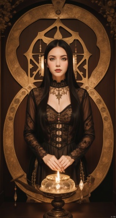Masterpiece, best picture quality, photo texture, a 25-year-old Gothic girl, diviner, lust wall, Seven SINS, (Lamper, amber) ornaments, surrounded by crystals, inspired by ice demons, biphasic diagram,