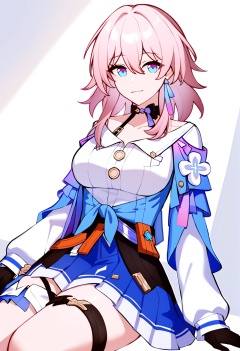<lora:三月七koha:0.8>,a girl named march7th,march7th,1girl,solo,white shirt,tied jacket,black choker,single earring,pleated skirt,flower ornament,collarbone,black corset,black gloves,thigh strap,(best illustration:0),<lora:naipixa31-000019:0.0>,march 7th \(honkai: star rail\),march_7th_(honkai:_star_rail),, masterpiece, best quality, very aesthetic, absurdres