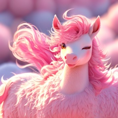 wuma, pony, whiskers, cute, cc-color-correction, mf-movie-filter, warm colors, whimsy and dramatic lighting, white fur, soft lighting, fluffy, pony focus, no humans, one eye closed, pink theme, closed eyes, blurry, :o, open mouth, blurry background, brown eyes, looking at viewer, outdoors, sky, cloud,<lora:wuma_v1:0.8>,