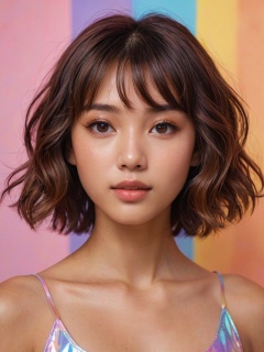 score_9, score_8_up, score_7_up, score_6_up, score_5_up, score_4_up,HONG KONG Girl ((September Ai)) with brown colour skin, short hair, 1girl, solo,long wavy hair,flowing rainbow colored holographic background,portrait, holographic, iridescent, vaporwave, fluid,niji style,realistic