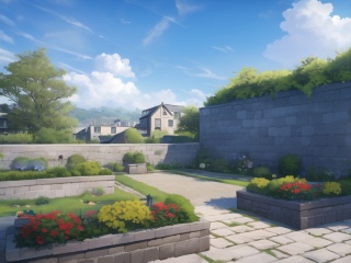 outdoors,Homestay,garden,lighting,old stone wall,Terrace landscape,, (masterpiece,best quality,ultra_detailed,highres,absurdres:1.2)