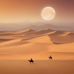 desert_sky,outdoors,sky,moon,scenery,desert,wide shot,animal, landscape, tang_hanfu, FANTASY