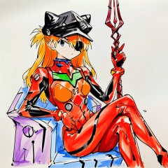colored_pencil_drawing,masterpiece, best quality, 1girl, souryuu asuka langley, neon genesis evangelion, rebuild of evangelion, lance of longinus, cat hat, plugsuit, pilot suit, red bodysuit, sitting, crossed legs, black eye patch, throne, looking down, from bottom, looking at viewer, outdoors, masterpiece, best quality, very aesthetic, absurdres