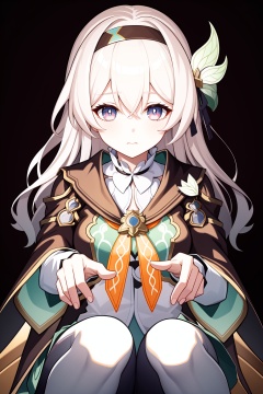 <lora:流萤2latest:1:lbw=char>,a girl named liuying,liuying,1girl,sidelocks,white shirt,black jacket,long sleeves,cropped jacket,orange neckerchief,white bow,collared shirt,<lora:nai3画风bysdlion-000035:0.0:lbw=paint>,black legwear,best illustration,, (masterpiece,best quality,high quality:1.4),absurdres,