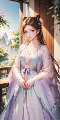 A girl, silk Hanfu, white,,CG