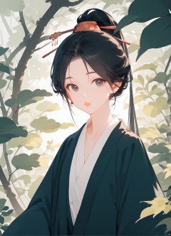 score_9, score_8_up, score_7_up, 1girl,A beautiful Chinese girl with long black hair,stands on the forest path,with bamboo leaves around it. She has exquisite facial features,clear eyes,big wavy lips,light makeup,and a gray color scheme in the style of high-end photography. The photo shows her full body in high definition and high resolution,BUAICHIYU,
