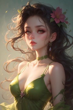 Psychedelic style doodle of a girl,pretty face,lovely dress,dynamic angle,flowers,plants,Vibrant colors,abstract forms,surreal,full_body, <lora:春风十里:0.8>