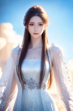 cowboy_shot,(Good structure), DSLR Quality, Masterpiece, (ultra wide angle lens: 1.2), Unity8k wallpaper, best quality, (detail shadow: 1.1), a beautiful girl, on a sea of light blue silk, translucent silk, floating light blue silk, surrealist style, minimalism, highly detailed texture, light blue, white clean background, CG rendering, light passing through clouds, 8k resolution, (motion photo: 1.2), (Fidelity: 1.4), original photos, movie lighting, 1girl,, , ((poakl)),kind smile,, weddingdress, zhangyuxi, nangongwan, NaGongWan,Xlimuwan