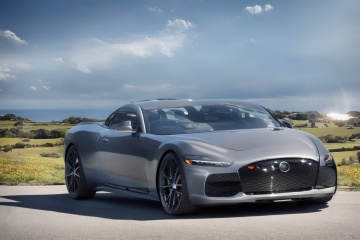 A sleek, black sports car with luxurious lines and premium detailing glides effortlessly down a sun-kissed highway on a crystal-clear day. Shot in stunning 4K resolution, the camera captures the vehicle's every curve and contour as it zooms along the open road, framed by a brilliant blue sky and a scattering of wispy clouds.