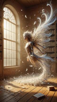 <lora:ElementWindSDXL:1>ElementWind fantasy digital art, dandelion wishes, wind, floating dandelion seeds, sunset, golden hour, warm colors, dust particles, old library, ancient books, dusty shelves, dim light, candle light, wooden floor, red brick walls, atmosphere, magical, surreal, detailed, vibrant, whimsical, intricate, dreamlike, concept art, illustration, artstation, wallpaper, promotional art, dramatic lighting, soft shadows,unicorn wind, blowing ethereal streaks, gusts of wind, (Masterpiece:1.3) (best quality:1.2) (high quality:1.1)