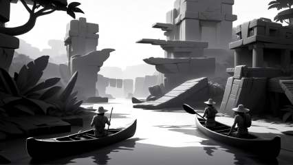 <lora:WhiteboxStyleXL:1>WhiteboxStyle mill monochrome, ambient occlusion, <lora:WhiteboxStyle:0.8> WhiteboxStyle, Amazon Adventure Expedition: Canoe navigation, ancient ruins, native tribe interactions, wildlife survival, hidden artifacts., (Masterpiece:1.3) (best quality:1.2) (high quality:1.1)