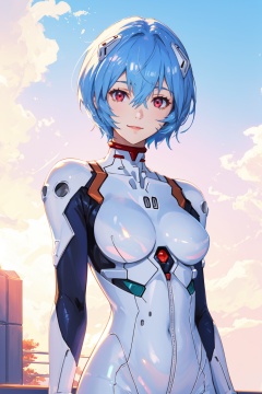 <lora:Rei-000011:0.6>,Rei CYQL,1girl,looking at viewer,solo,blue hair,red eyes,hair between eyes,medium breasts,(Rei 00,short hair,hair between eyes,white bodysuit,plugsuit,interface headset,bodysuit,two-tone sleeves),crazy_smile,upper_body,Swiss café,Pastries,Afternoon sun,Coffee,Delight,beautiful detailed sky,beautiful detailed glow,posing in front of a colorful and dynamic background,masterpiece,best quality,beautiful and aesthetic,contrapposto,female focus,wallpaper,