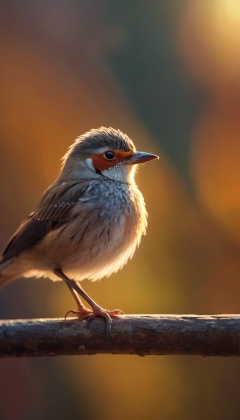 A mesmerizing close-up portrait of a gorgeous little bird illuminated by the soft,golden light of a tranquil morning,with vibrant bokeh balls gently framing its delicate form. The image is rendered in sharp detail,capturing every feather and intricate feature of the bird with stunning clarity. Soft,diffused lighting enhances the warmth and radiance of its plumage,while the high-quality bokeh adds a touch of magic to the scene. Multiple image exposures are expertly combined to emphasize the bird's vibrant colors and captivating gaze. This stunning image is rendered in insanely high resolution,realistic,8k,HD,HDR,XDR,focus + sharpen + wide-angle 8K resolution + HDR10 Ken Burns effect + Adobe Lightroom + rule-of-thirds + high-detailed bark. Canon EOS 5D Mark III,1/160s,f/8,ISO 100. The resulting image is a masterpiece of nature photography,with lifelike colors and exquisite details that evoke a sense of tranquil beauty. (tranquil yet evocative:1.2),shimmering digital colors,mixed media,textured paper,overlapping,asymmetrical,abstract,vibrant,many details,extreme detailed,full of details,Wide range of colors.,Many details everywhere. soft shadows. Low saturation colors. Insane quality. Insane resolution. Insane details. Masterpiece. 32k resolution.,Dramatic,Dynamic,Cinematic,Sharp details,