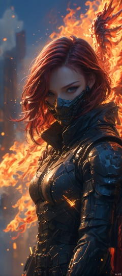 1 girl, Flame body, masterpiece, top quality,phoenix dark is x-men, beautiful and aesthetic:1.2, (1girl:1.3), (full body:1.5),red suitbody ,looking at viewer,fire hair, extreme detailed,(fire hands:1.5),fire,smoke,goddess, detailed, detail fingers, detail face, masterpiece,ultra realistic,32k,extremely detailed CG unity 8k wallpaper, best quality, Cinematic photography, movie mood, cinematic light, compelling composition, storytelling elements, conveys emotion, mood, and narrative depth, creating visually striking images that feel like still frames from a film, Cinematic portrait photography, capture subject in a way that resembles a still frame from a movie, cinematic lighting, story, narrative quality, drawing viewers into the scene and evoking a sense of cinematic immersion, capturing emotion, professional, engaging, compelling composition, night photography, nocturnal beauty, city lights, starry skies, celestial wonders, moonlit landscapes, urban glow, capturing the essence of darkness, ethereal atmosphere, dramatic shadows, magical ambiance, long exposure techniques, expert use of light sources, Heavenly Breasts, HKMAGIC,Wearing fist gauntlets, HKSTYLE,MECHA ANGEL SOLDIER,((Hold huge spear and huge shield:1.5)),