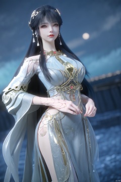 (Masterpiece:1.2), best quality,1girl, looking_at_viewer,(big breasts:1.69),Xyaoye,Large aperture, blurred background, spring scene,flowers,Xsimiaoling,full moon,Xbaiyuerong