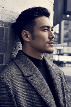 jzns,hbing,1man,fashion model,male focus,asian,solo,exquisite facial features,handsome,fashion forward, facial hair, upper body, profile, mature,(masterpiece, realistic, best quality, highly detailed,profession),
