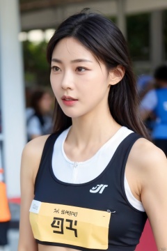 (RAW photo, 4k, realistic, exquisitely detailed skin),masterpiece,best quality,unity 8k wallpaper,ultra detailed,cinematic look,natural skin texture,extremely realistic skin texture,finely detailed face,(film grain:1.2),cinematic angle,Fujifilm XT3,,(highlydetailed),asian, black hair, blurry, blurry background, blurry foreground, clothes writing, depth of field, lips,  name tag, navel, realistic, solo focus, teeth