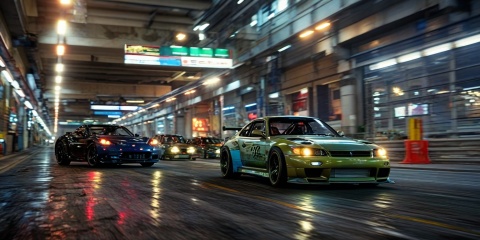 速度与激情:极限竞速场景: 东京的地下赛车场,角色: 多米尼克·托雷托与新对手,摄影技巧: 使用车内摄像头和高速摄影机,捕捉车辆漂移和高速追逐的惊险瞬间,结合夜景照明效果营造紧张氛围,