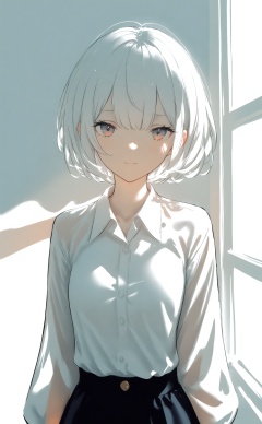1girl,white hair,short hair,blouse,white_shirt,collared_shirt,