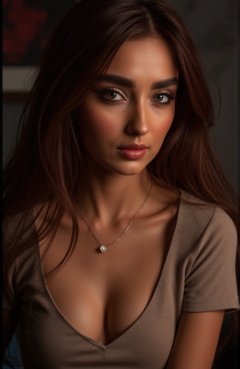 Indian beauty, sfw, cleavage, closeup view, masterpiece, high quality, hyper-realistic photography captured with the best camera, 3D, HDR, high definition, pore and detailed, intricate detailed, volumetric lights, cinematic lighting, vibrant color, cool actress, beautiful woman, 25 years old, sexy sfw, smirk, red hair, casual tight cotton clothing, hourglass body, luxury home,  wide hips, wide hips, wide hips, nice ass, thigh gap, crotch gap, crotch gap, photorealistic photo, huge size natural breasts, full body shot, head to thigh view, looking at viewer, (((thick, curvy body, big breasts))),
