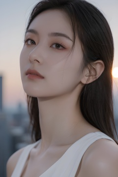 <lora:0814_04:0.7>,Frontal photography,Look front,evening,dark clouds,the setting sun,On the city rooftop,A 20 year old female,Black top,Black Leggings,black hair,long hair, dark theme, muted tones, pastel colors, high contrast, (natural skin texture, A dim light, high clarity) ((sky background))((Facial highlights)),, 1girl,realistic,masterpiece, best quality, photorealistic, HDR,detail