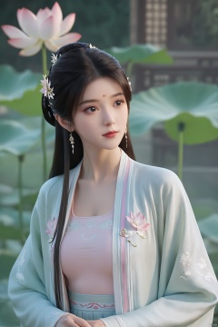 Morning Serenade In the gentle morning glow, (a woman in a pink lotus-patterned Hanfu stands in an indoor courtyard:1.26),(Chinese traditional dragon and phoenix embroidered Hanfu:1.3), admiring the tranquil garden scenery. The lotus-patterned Hanfu, embellished with silver-thread embroidery, is softly illuminated by the morning light. The light mint green Hanfu imparts a sense of calm and freshness, adorned with delicate lotus patterns, with a blurred background to enhance the peaceful atmosphere,(huge breasts:2.7),Xsutaner,Xhulianxin