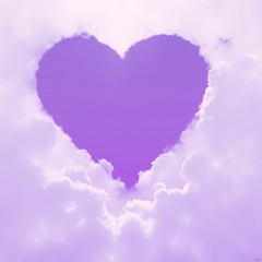 and the clouds surrounding it are a mix of white and light purple. The clouds are surrounding the heart