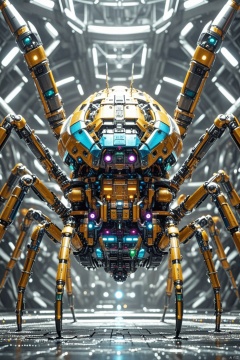 spider,  machine, non-humanoid robot, mecha, machinery, gears, solo