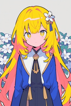 (masterpiece),(best quality),1girl, bangs, bright_pupils, closed_mouth, flower, grey_background, hair_ornament, long_hair, looking_at_viewer, solo, upper_body, very_long_hair, white_flower, white_pupils