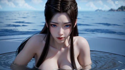 1girl,long hair,black hair,solo,blue eyes,water,artist name,closed mouth,lips,collarbone,nude,<lora:girl solo yuanyao_20240908025103:0.6>,incredibly absurdres,wallpaper,<lora:Gloss_Tweaker_V2:0.6>,<lora:粉色妆容强度调节滤镜:0.7>,huge filesize,