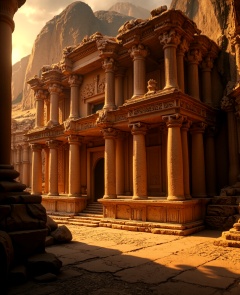 a detailed ancient greek temple, detailed architectural columns, intricate stonework, dramatic lighting, epic scale, photorealistic, 8k, high resolution, masterpiece, ultra-detailed, cinematic, dramatic shadows, warm golden tones, glowing warm sunlight, detailed carved stone, ornate decorative elements, majestic and grand, imposing and awe-inspiring, beautiful symmetry, stunning and breathtaking