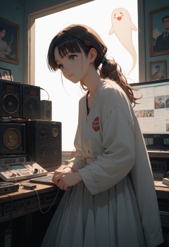 score_9,score_8_up,score_7_up,masterpiece,best quality,8k,a girl ghost hunt,radio,1960s,anime,