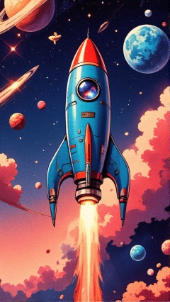 galaxies, rocket, planets, stars, cute illustration, cute art, cute characters, cute digital art, illustrated in whimsical style, children's illustration, cute features, illustration, cozy calm, cute detailed digital art