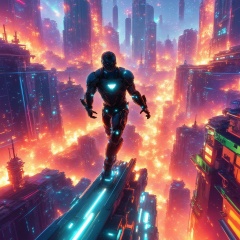 iron man, Warframe. mechanical, sparks explosions city of the future gunfight destroyed city, in a black suit, Marvel, smoke wind. beautiful angle. art. watercolor. streaks. black red white., 4k, beautiful, high resolution,txzncl, Captured at eye-level on a vibrant day, adding a pop of color to the scene,