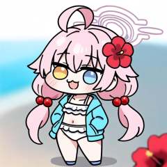 masterpiece,best quality,<lora:doro_illu-xl-v0.1-000063:1>,(chibi,:3,doro),solo,red flower,1girl,hoshino (blue archive),flower,blue jacket,hoshino (swimsuit) (blue archive),hair ornament,white bikini,frilled bikini,heterochromia,swimsuit,twintails,long hair,ahoge,yellow eyes,bikini,navel,halo,blush,looking at viewer,jacket,frills,low twintails,blue eyes,open mouth,pink hair,collarbone,hair between eyes,hair bobbles,outdoors,long sleeves,hair flower,official alternate costume,hibiscus,open clothes,blurry,
