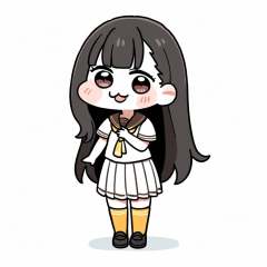 masterpiece,best quality,<lora:doro_illu-xl-v0.1-000063:1>,(chibi,:3,doro),<lora:make_heroine_ga_oo_sugiru_style_ill-xl-v0.1-000013:1>,masterpiece,best quality,1girl, nukumizu_kaju, solo, school_uniform, white_background, smile, looking_at_viewer, open_mouth, socks, simple_background, sailor_collar, short_sleeves, shoes, yellow_socks, serafuku, skirt, white_skirt, neckerchief, :d, full_body, loafers, standing, white_dress, black_footwear, shadow, white_serafuku, dress, black_sailor_collar, orange_socks, hand_on_own_chest, blush